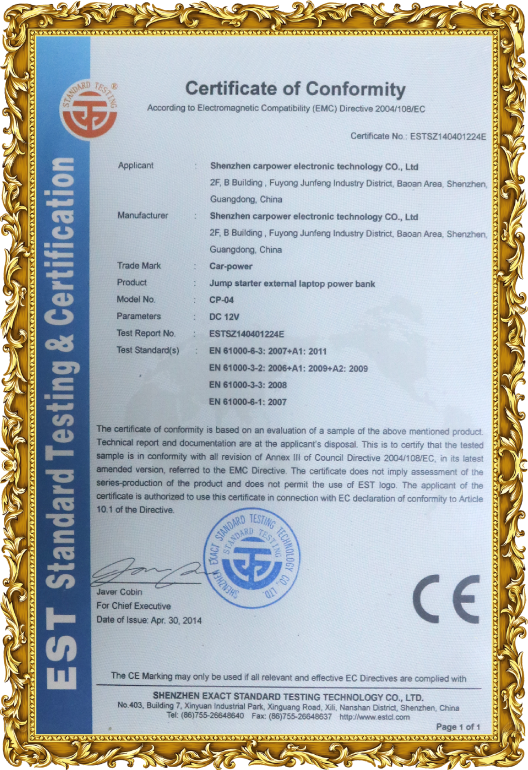 As for company quality management, Carpower has passed the ISO9001 International Quality System Certification. We are highly qualified & with all the necessary certifications, such as CE, ROHS, FCC, UN38.3, etc. Moreover,Carpower also approved by SGS.
